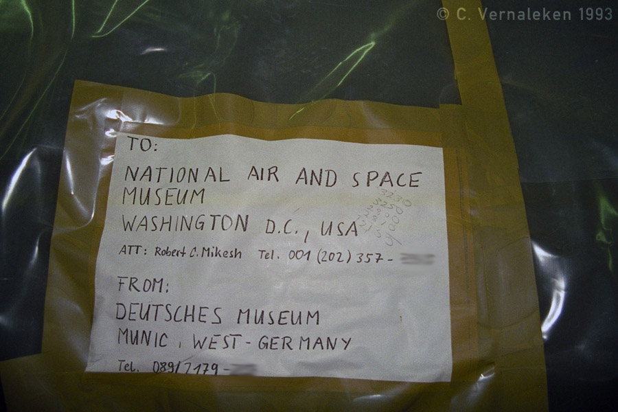 Nach Auslaufen des Leihvertrages wurde die Maschine an das National Air and Space Museum (NASM) zurückgegeben, wo sie zunächst wieder ins Depot wanderte. Die Aufnahmen unten entstanden am 7. April 1993 während eines Besuches im Außenlager des NASM in Silver Hill.