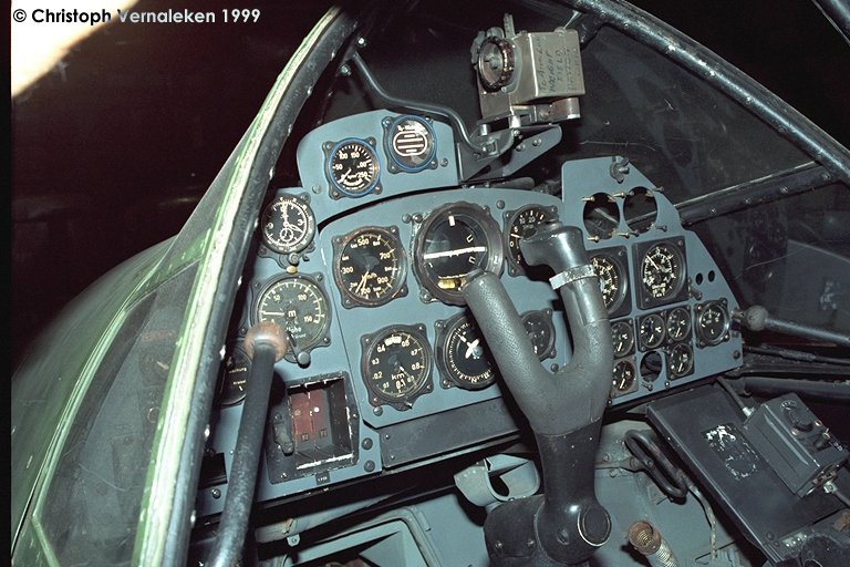 Dieser Schnappschuß des Cockpits zeigt das Instrumentenbrett. Bei der Restaurierung in Deutschland mußten bezüglich der Instrumente und Schalter in Ermanglung von Originalteilen Kompromisse eingegangen werden. Die Perfektionisten vom NASM wollen mit Hilfe eigener Instrumente den absoluten Originalzustand wiederherstellen. Dazu wurden zunächst alle Schalter und Instrumente, die nicht paßten, ausgebaut.